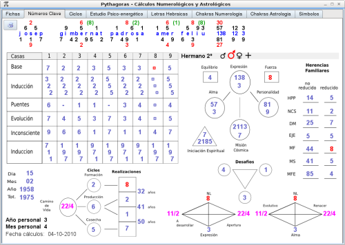 La segunda es el resultado gráfico del tema numerológico. Aquí tenéis dicha imagen para que podáis tener una idea de la cantidad de información que tenemos en este método, aquí podéis ver los números clave que iremos desgranando y aprendiendo a lo largo del curso:
